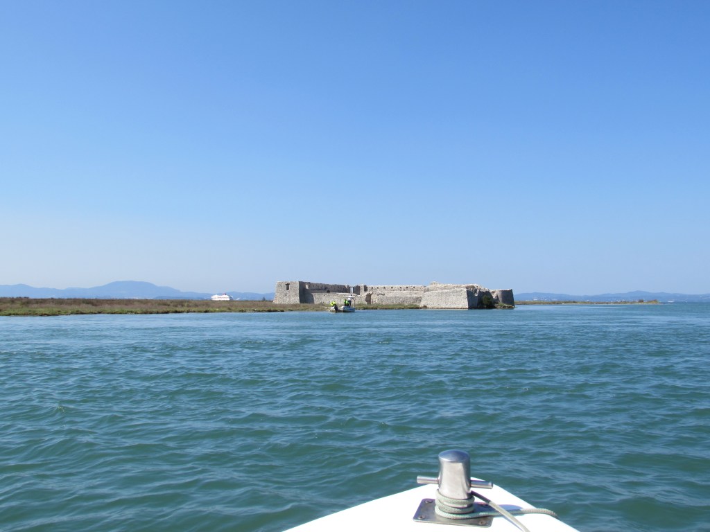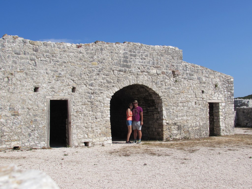 Ešte na parkovisku, pred vstupom do Butrintu, nás oslovil jeden pán, či by sme nechceli navštíviť hrad. Chvíľu nám trvalo, kým sme si uvedomili, že mal na mysli hrad, kde sa dá dostať iba loďou a nie iný hrad. Uvedomili sme si, že Peťo sa ešte na takejto lodi nevozil, tak sme súhlasili. Odviezol nás k malému hradu, ktorý patril tureckému panovníkovi, ktorý sa volal Ali Pasha. Ten ho postavil na začiatku 19. storočia, aby ochránil Butrint. Pozostatky hradu boli naozaj v dobrom stave. Bolo to zaujímavé, dostať sa tam loďou. Pozri si to na Google Mapách. Klikni sem a kochaj sa.