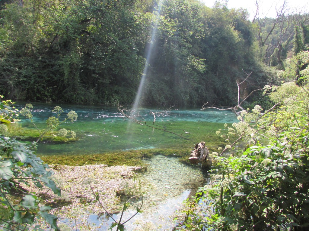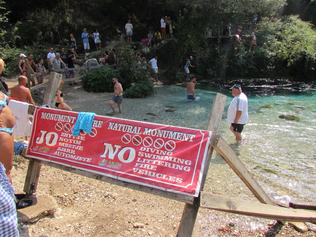 Nápad navštíviť toto mesto dostal Peter. Mali sme jeden deň voľný, pôvodne sme chceli ísť na výlet džípom, no kvôli zlému počasiu ho zrušili. Tak sme sa na miesta, kam by sme šli džípom, vybrali s našou Fabčou. Ešte pred samotnou návštevou mesta sme sa zastavili v prírodnej rezervácii Modré oko (Syri I Kalter). Je to výnimočný podzemný prameň, vyvierajúci niekoľko kilometrov od hlavnej cesty medzi Gjirokastërom a Sarandë. Voda vyviera na povrch v hlbokom jazierku. Farba jazierka a jeho rôzne odtiene modrej tak vytvárajú zorničku a dúhovku oka. Skalné dno, z ktorého prameň vyviera, leží viac ako 45 metrov  pod povrchom. Bolo tam naozaj krásne. Dlho sme sa tam nezdržali, keďže ľudí bolo o čosi viac a prešli sme to rýchlo