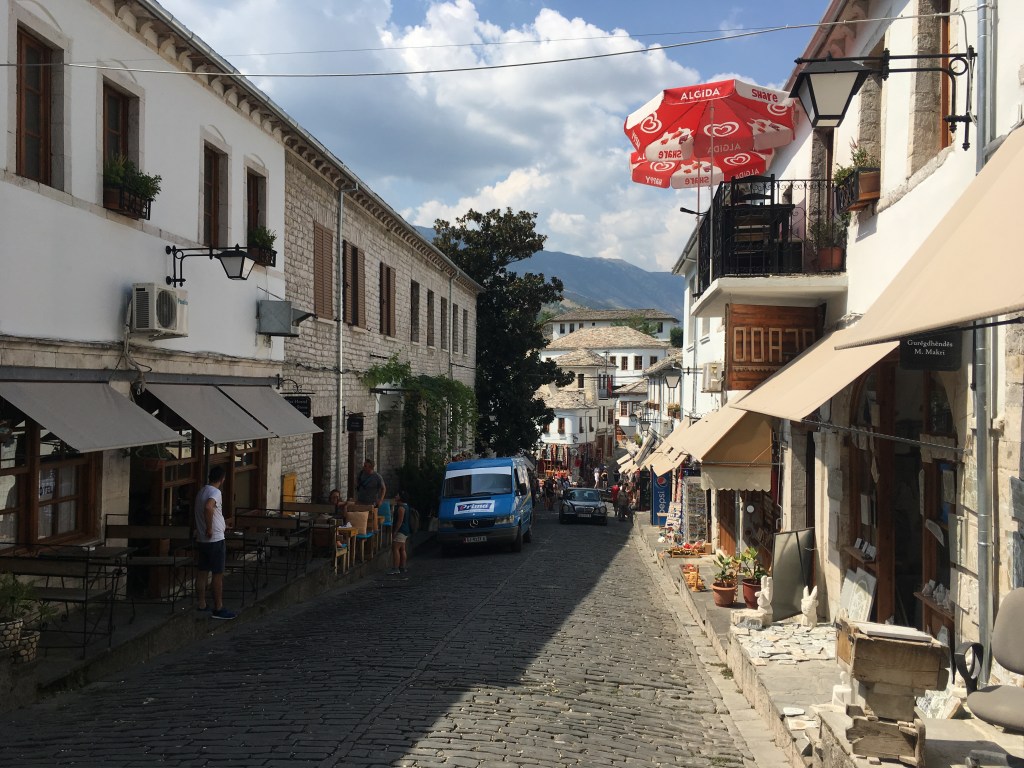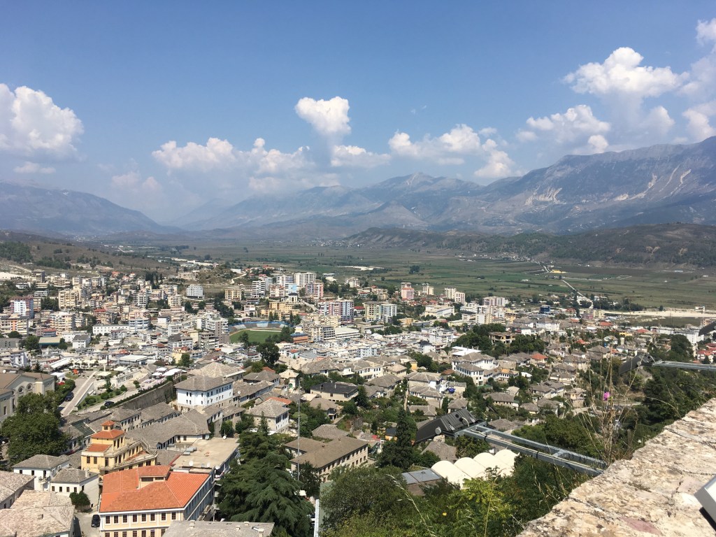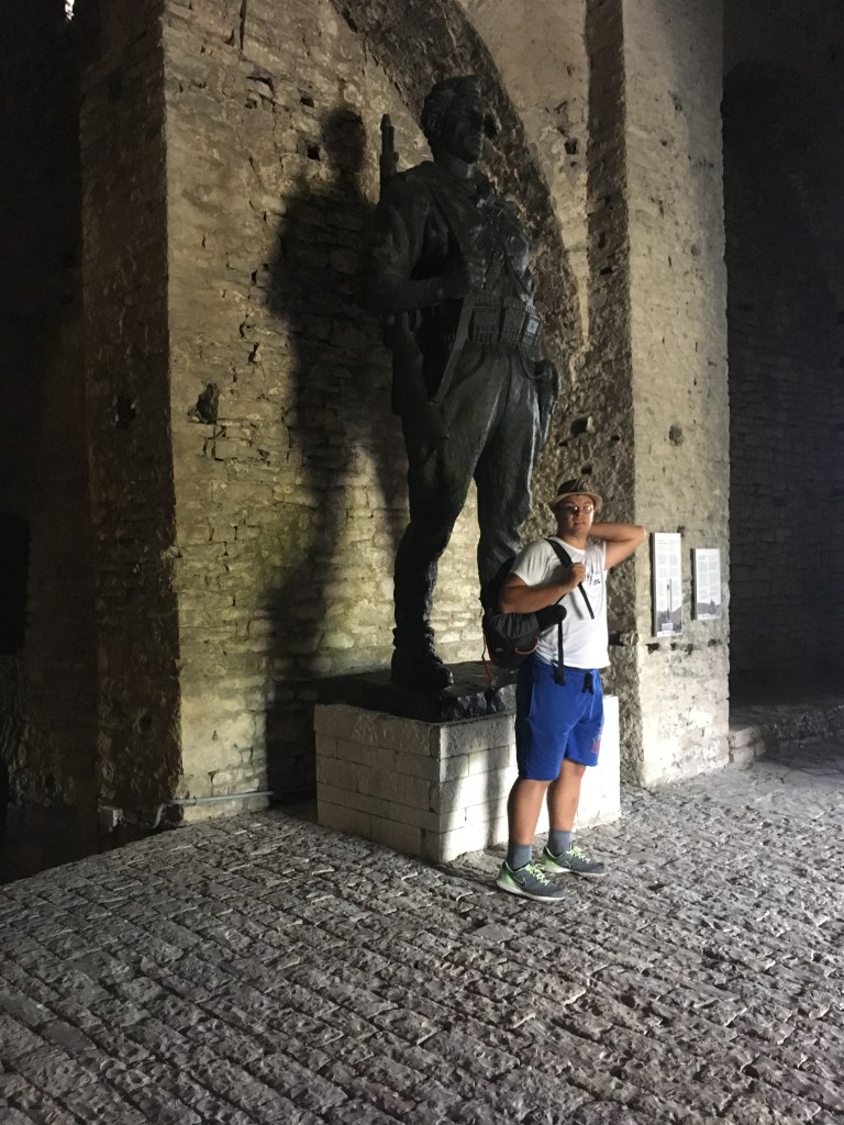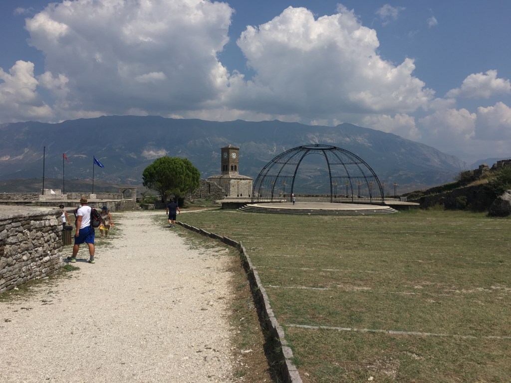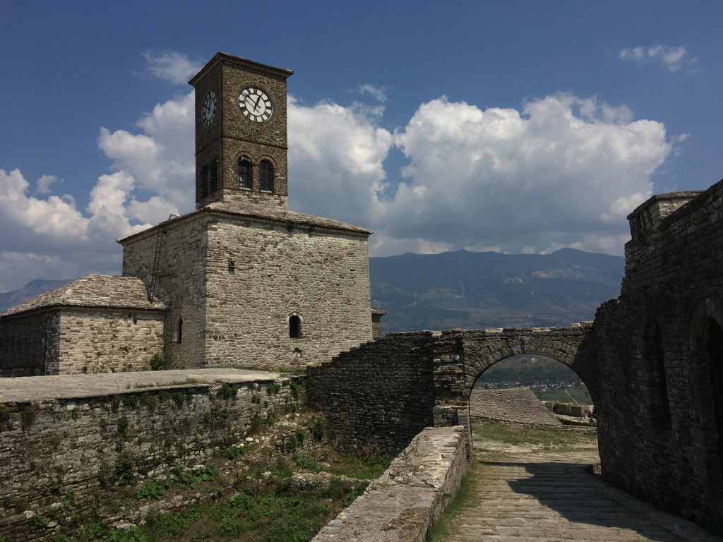 Nakoniec sme prišli do mesta Gijokaster. Hrad, na ktorý sme sa najprv vydali pozrieť, bol asi najlepší zo všetkých hradov, ktoré sme (zatiaľ) v Albánsku videli.  Kopec hore nám dal zabrať, ale zvládli sme to. Výhľad na mesto, rôzne zachovalé kúsky v hrade a opis vecí aj v anglickom jazyku zanechali skvelý dojem pre nejedného turistu. Keď sme si prešli hrad, dostali sme sa do Múzea zbraní, za ktoré sme si priplatili tuším 300 lek/os. Za samotný hrad sme platili do 500 lek (4 €). Presne si to už nepamätám. Lístky sme odovzdali na toaletách, aby sme ich mali zadarmo.