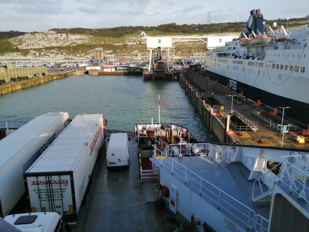 Do Anglicka sme šli prvýkrát sami. Do prístavu v Dunkirku sme sa dostali bez najmenších komplikácií. Cestu nahral kolega na svoj vlog, takže sme presne vedeli, kam ísť. Napriek našej snahe stihnúť trajekt čo najskôr sme ho nestihli. Do prístavu sme prišli o 3.30 hod. a najbližší voľný trajekt bol až na 8.00 hod., čo bol trošku problém, keďže v tom čase nás už mali čakať na vykládke.