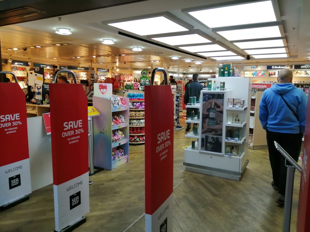 Pre bežných pasažierov je na lodi reštaurácia, bar a duty free obchod. V ňom majú množstvo zaujímavých vecí. Nás najviac očarili obrovské fľaše rôznych značiek alkoholu. Keďže si väčšinou alkohol kupujeme podľa vzhľadu, nie podľa značiek či druhu, a zbierame skôr tie fľaše ako alkohol. Doma máme niekoľko podobných kúskov zo zahraničia. Mali tam aj magnetky a rôzne suveníry, ktorým bolo ťažko povedať nie. Nehovoriac o parfumoch, ktoré si tam ľudia nakupovali vo veľkom.