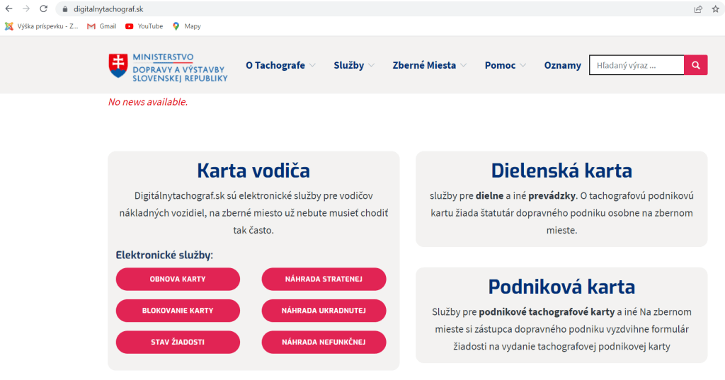 - Pre držiteľov kariet vodiča boli vybudované špecifické elektronické služby, zverejnené na webovom sídle digitalnytachograf.sk .