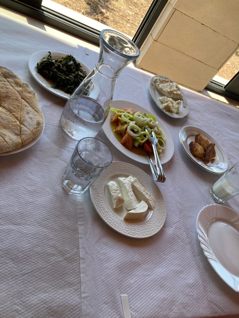 Naša ďalšia zastávka bola o niečo príjemnejšia, zastavili sme sa v tradičnom albánskom podniku, ktorý viedol jeho kamarát. Dostali sme tradičné albánske mňamky. A vyskúšali sme aj tradičný nápoj dhalle, ktorý je vlastne je obľúbeným jogurtovým nápojom, ktorý chutí najmä počas horúcich letných dní, o čom sme sa mohli sami presvedčiť. Mne to chutilo ako naše acidko (ale jemnejšie), neviem, bola to zaujímavá chuť. Trošku som sa bála, či to môj citlivý žalúdok zvládne, pretože to bol domáci produkt, no bála som sa zbytočne.