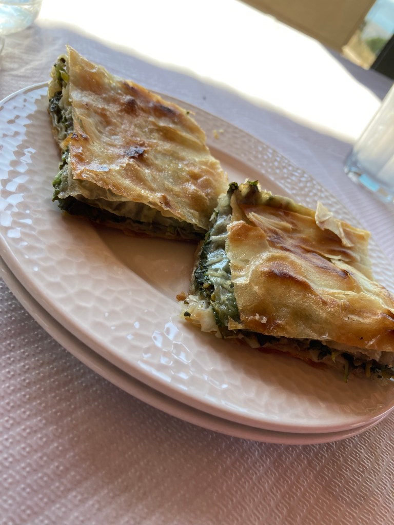 Dostali sme domáce syry, burek (tradičný balkánsky slaný koláč), maslo a zeleninu. Čo som zabudla vymenovať, uvidíte na fotografii.