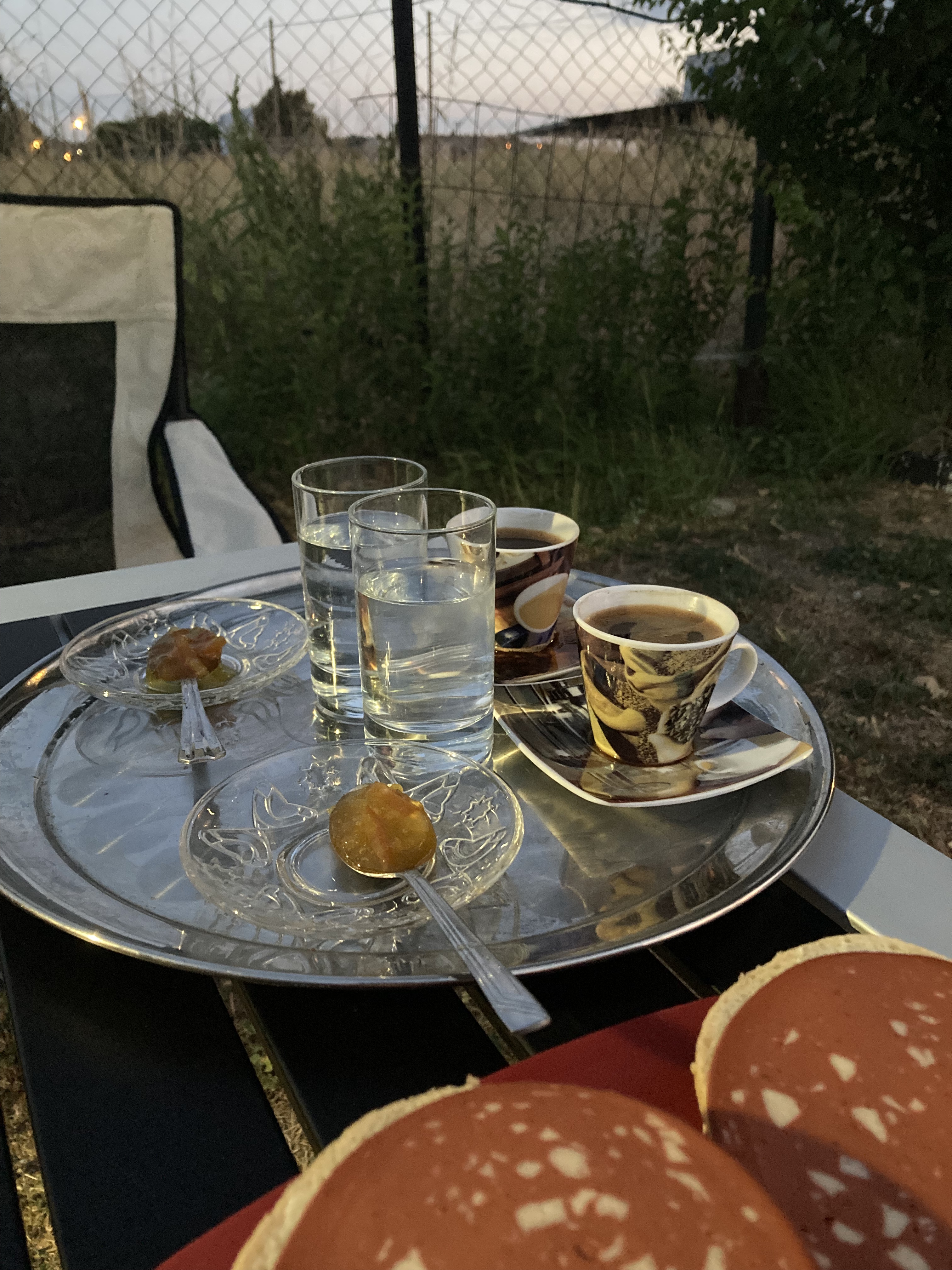 Urobili sme si večeru, počas ktorej nám pani majiteľka pripravila tradičnú balkánsku kávu, t.j. klasického turka, ktorú robí každému na privítanie. Vôbec jej nevadilo, že už bol večer. Dlho sme váhali, či zostať a ísť do mesta na druhý deň, alebo sa presunúť ďalej, pretože z kempu a Grécka sme hneď nemali veľmi dobrý dojem a v Solúne sme nič zaujímavé nenašli, čo by stálo za návštevu.