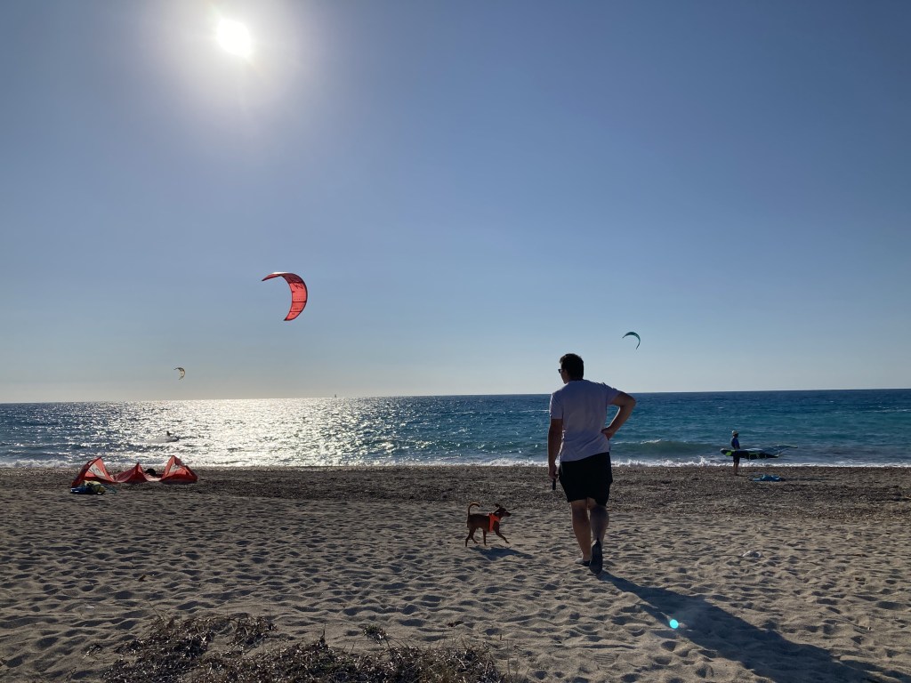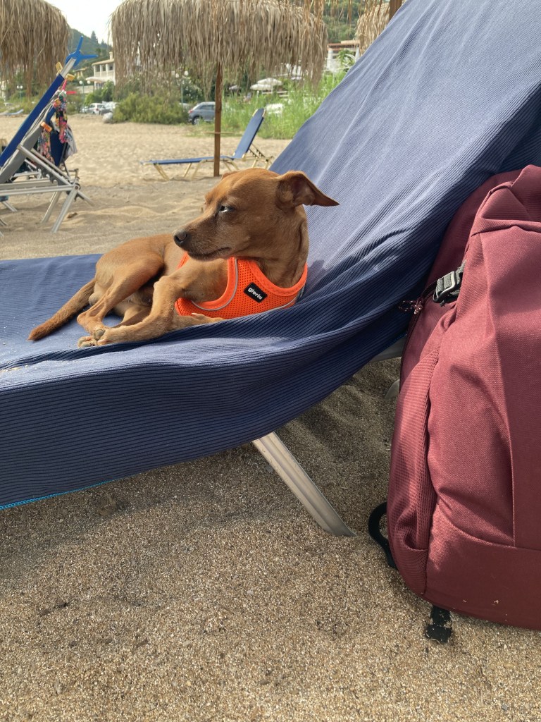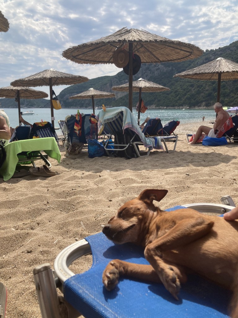 Nasledujúce dva dni sme strávili na pláži (Agios Georgios), ktorá bola trošku ďalej od nášho kempu, no nebola vôbec preplnená, a boli tam lehátka so slnečníkom za priateľnú sumu 8 €. V blízkosti bola aj skvelá reštaurácia, kde mali veľa vegetariánskych možností a skvelé radlery.