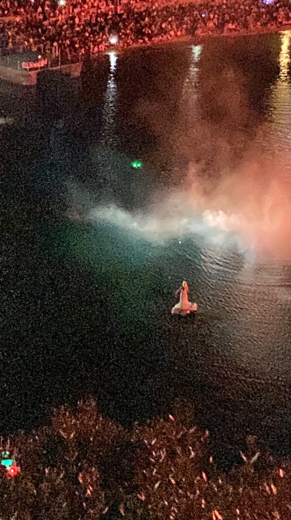 Po tanečných vystúpeniach nasledovalo predstavenie na vode, ktoré simulovalo bitku lodi o ostrov. Bolo to naozaj dojímavé. Ako bodka na záver nasledoval naozaj dlhý ohňostroj, ktorý tieto oslavy ukončil veľkým štýlom. Bolo to krásne. Vôbec sme neplánovali, že sa tu ocitneme a zažijeme oslavy, na ktoré chodí množstvo domácich a turistov zo zahraničia.