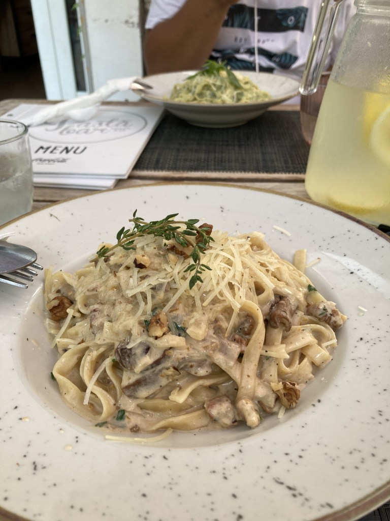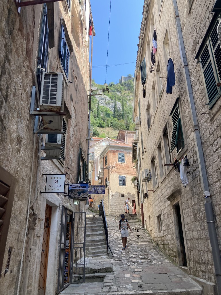 Posledný deň sme šli do mesta Kotor, kde sme sa omylom ocitli vo veľmi divnej reštaurácií, ktorú na Google Maps hejtovali asi všetci. No to sme sa dozvedeli, až keď už bolo neskoro. V meste sme našli tiež skvelé cestoviny, ale bolo tam plno a bol tam ďalší rad ľudí, ktorí čakali na stôl. Nechcelo sa nám čakať, tak sme to riskli inde.