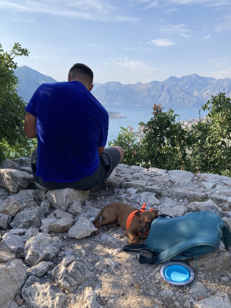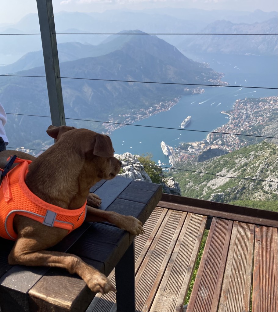 Pred návratom do kempu sme stihli ešte návštevu národného parku Lovćen, kde sme navštívili mauzóleum čiernohorského vodcu a básnika Petra II. Petrovića Njegoša. Je tam krásny výhľad, no platí sa vstupné a je potrebné zdolať niekoľko schodov. Pustili nás tam so psom, hoci bol jasný zákaz. Pán na vrátnici nás len upozornil, že do mauzolea nesmieme vstúpiť, čo sme rešpektovali. Za mauzoleom je ešte vonkajšia časť s výhľadom na okolie.