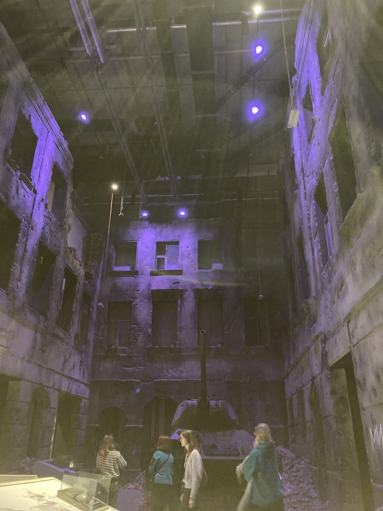 Naša prvá zastávka bola v Múzeum II. svetovej vojny. Vstupné bolo okolo 12 € za dvoch ľudí. Ak chcete vidieť všetko, vyhradte si dostatok času. My sme času nazvyš veľmi nemali, tak sme ho len rýchlo prešli. Múzeum má viacero častí, ktoré môžete navštíviť. Sú k dispozícii slúchadlá a nahrávky v niekoľkých jazykoch, no my sme ich nevyužili. Ku každému exponátu je text v anglickom a poľskom jazyku. Mňa osobne najviac očaril záver prehliadky, keď sme sa ocitli v miestnosti, ktorá pripomínala povojnové mesto. Múzeum je prepracované do detailov, a ak mám byť úprimná, lepšie som zatiaľ nenavštívila. Rozprávať vojnové príbehy nielen cez fotografie a popisky, ale aj takto, keď máte na tele husiu kožu, je nezabudnuteľný zážitok.